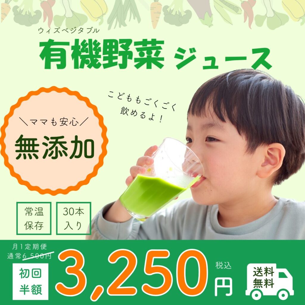 有機野菜ジュースの定期購入・初回半額キャンペーンの販促バナーを制作しました。