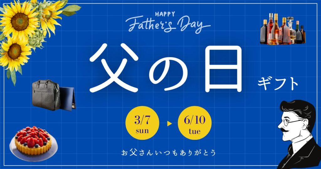 ひまわりのイラストと黄色のあしらいをアクセントとして加えることで、父の日らしい明るさと感謝の気持ちが伝わるデザインに仕上げました。