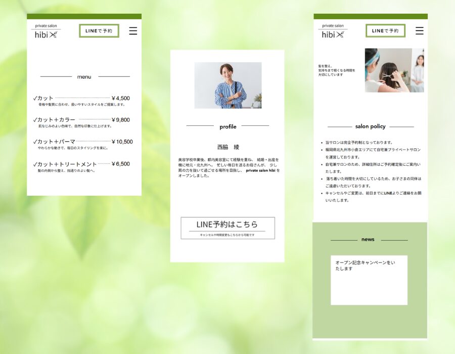 private salon hibi様(架空の美容室)